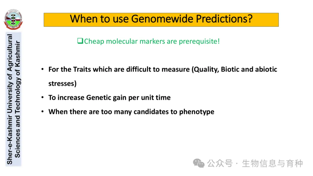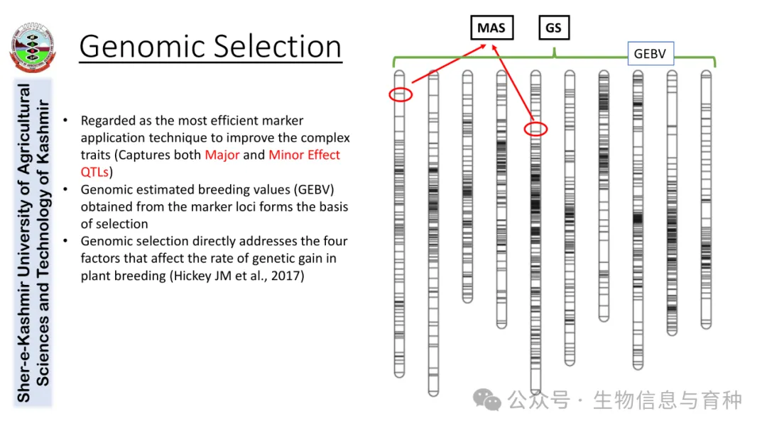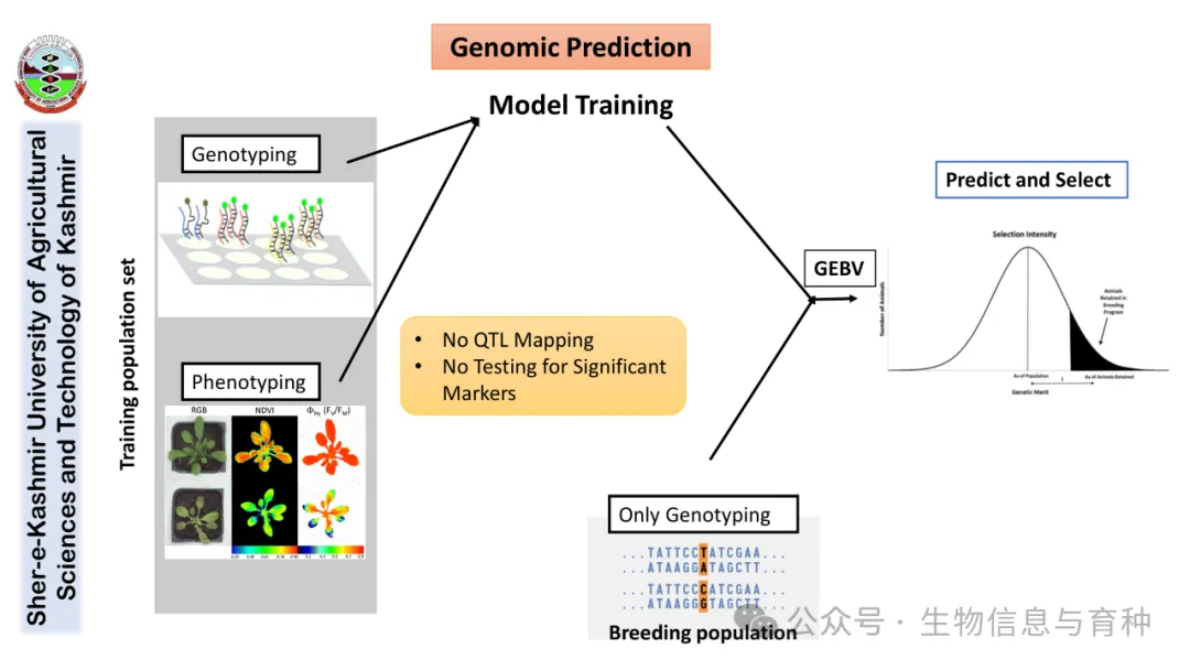 - • 定义:利用全基因组标记预测个体的基因组估计育种值(GEBV),无需QTL定位。