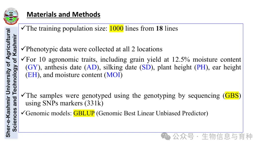 - • 模型选择(GBLUP、贝叶斯方法、机器学习等)。