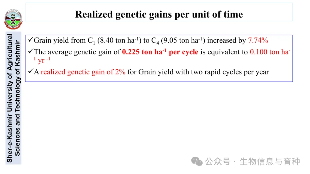 - • 年增益:0.1吨/公顷,相当于每年2%的遗传增益。