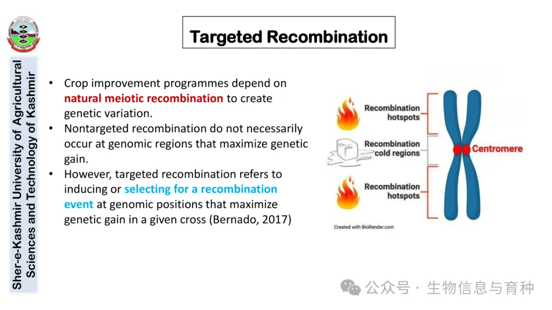 - • 靶向重组:在特定基因组区域诱导重组,最大化遗传增益;