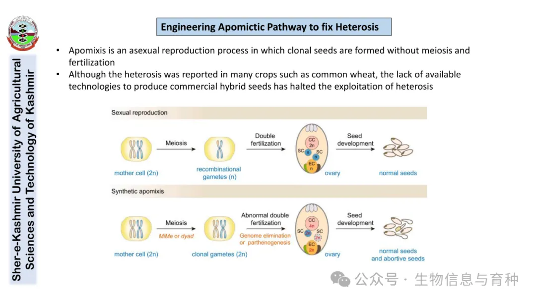 - • 固定杂种优势:通过诱导无融合生殖(apomixis)克隆杂交种子,解决杂交种商业化难题。