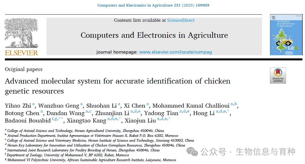 分享一篇今年由河南农业大学康相涛院士团队主导的研究论文Advanced molecular system for accurate identification of chicken genetic resources。该研究成功开发了一种高效、准确的鸡种质资源分子鉴定系统,文章提出的思路和方法,可拓展应用于其他家禽家畜物种。
