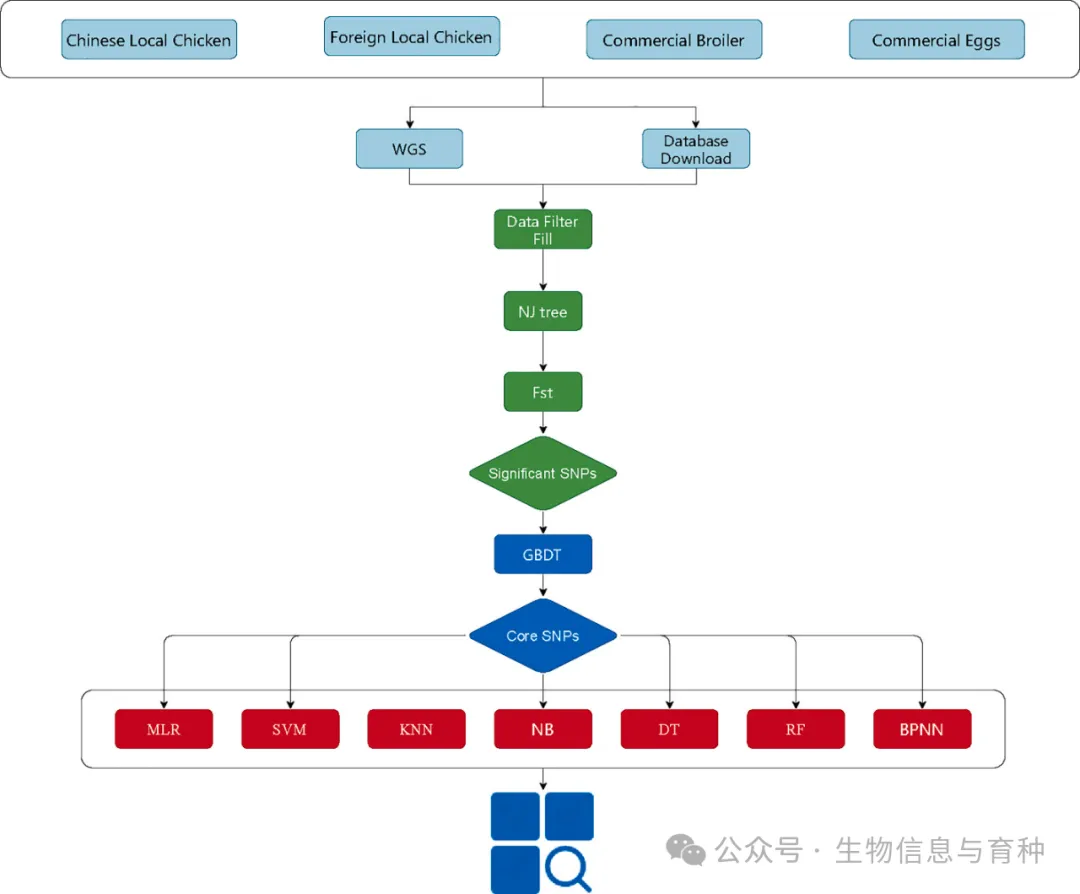 这篇文章的核心内容是介绍了一个用于精准鉴定鸡遗传资源的先进分子系统。该系统通过整合先进的基因组分析和机器学习方法,开发了一个高通量、准确的分子鉴定系统,以应对研究和工业应用中对可靠品种鉴定工具的迫切需求。该系统不仅能够快速、准确地鉴定鸡的遗传资源,还为鸡遗传资源的保护和可持续利用提供了有力支持。