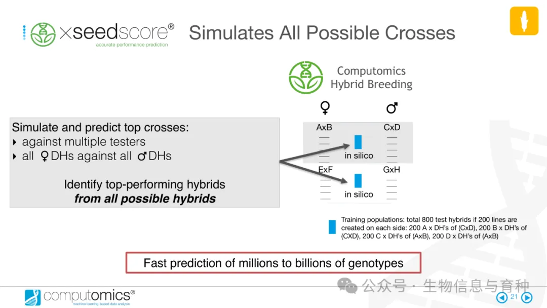 - • 用 800 个测试杂交即可训练预测 200♀×200♂ 全部 DH 组合