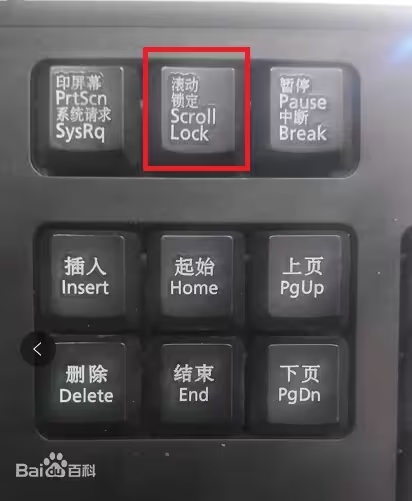 答: 应该是按到了键盘上的 Scrll Lock 键 即滚动锁定键